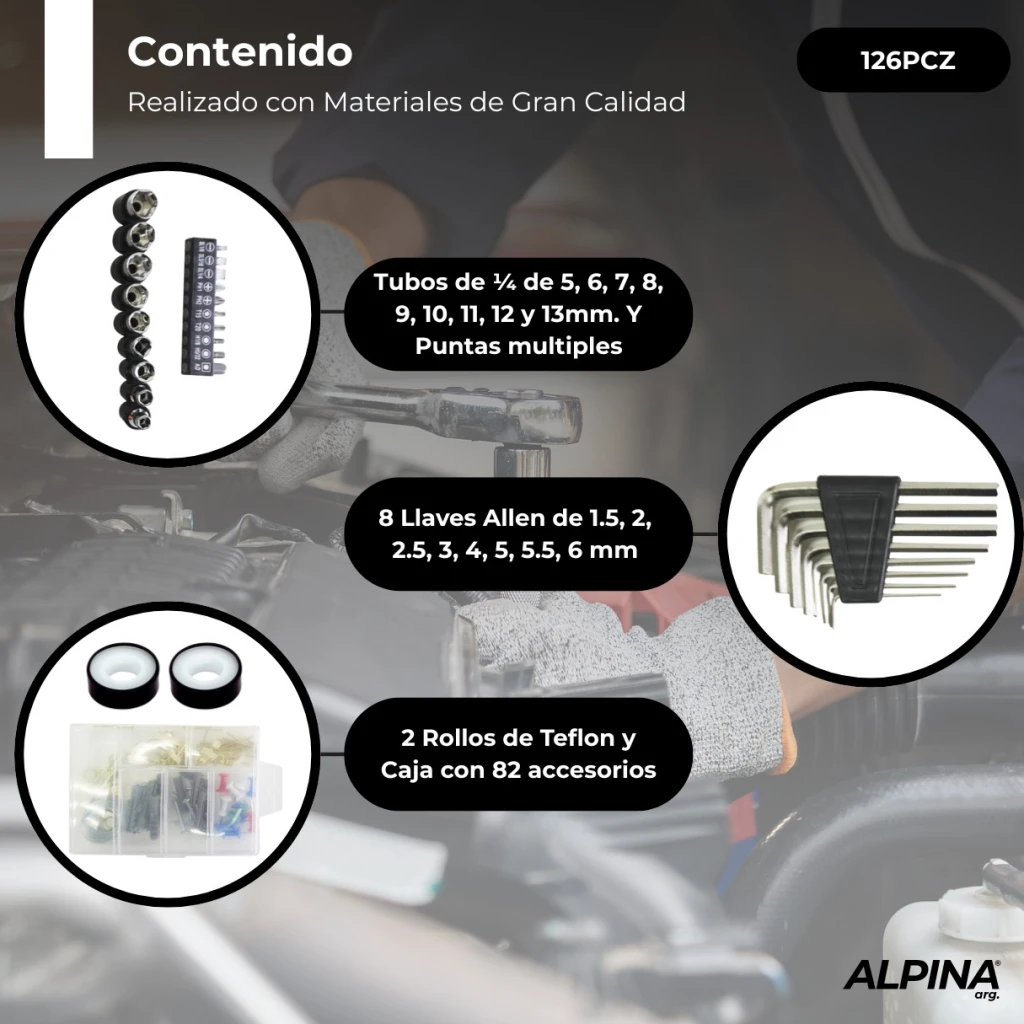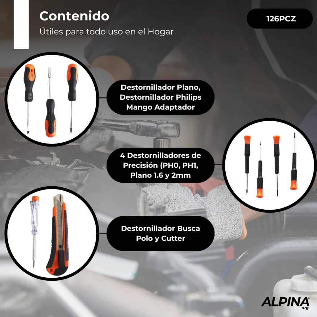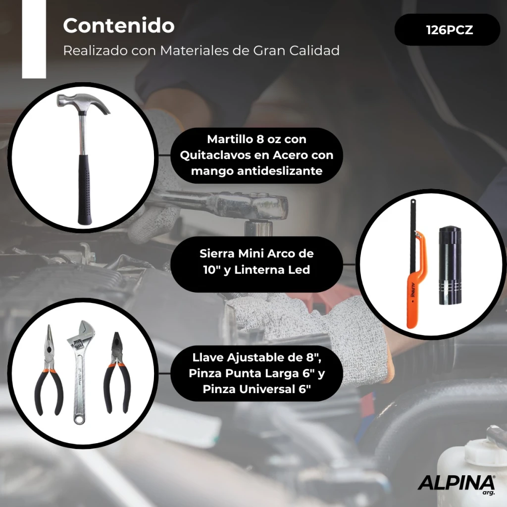 Set de herramientas manuales 126 Piezas Alpina